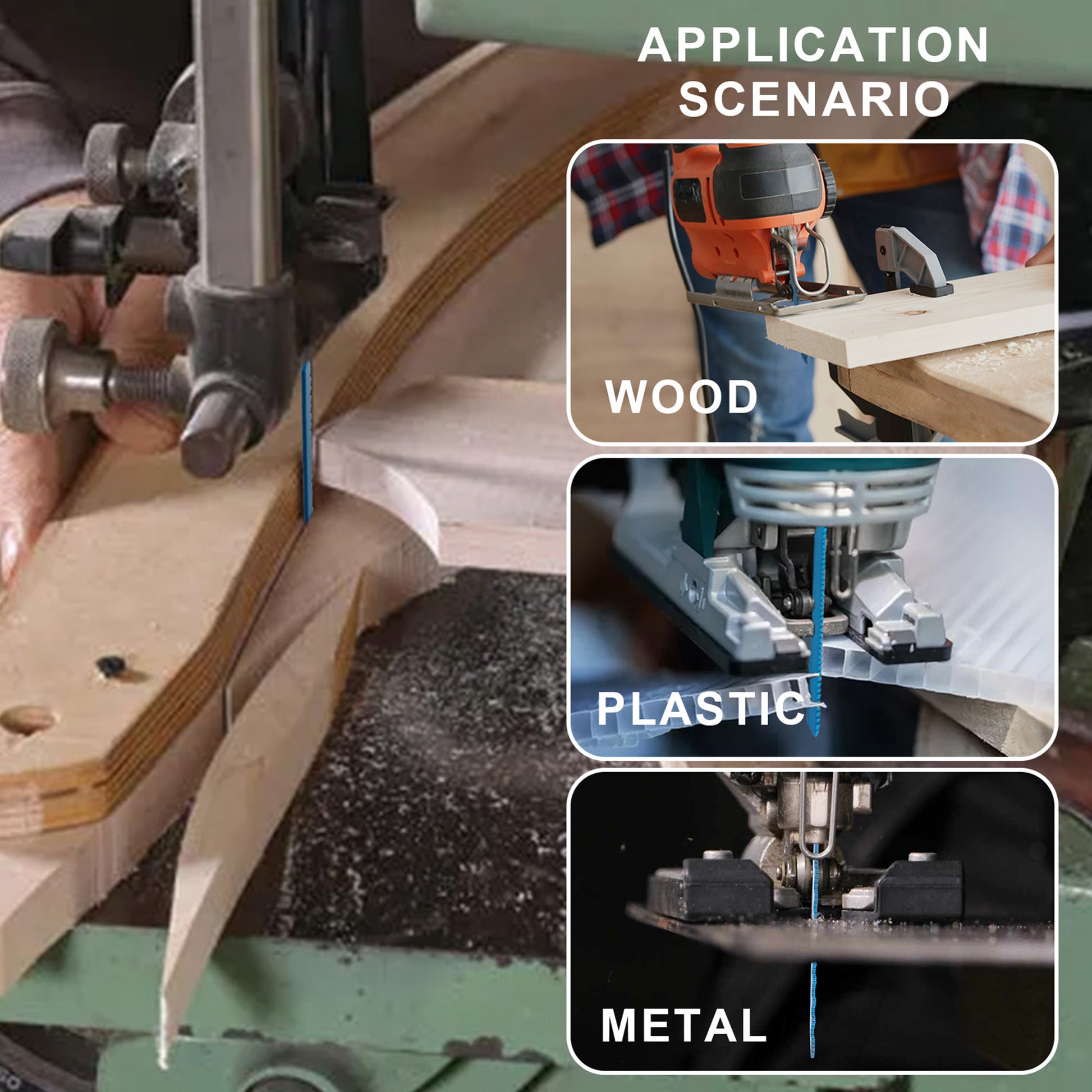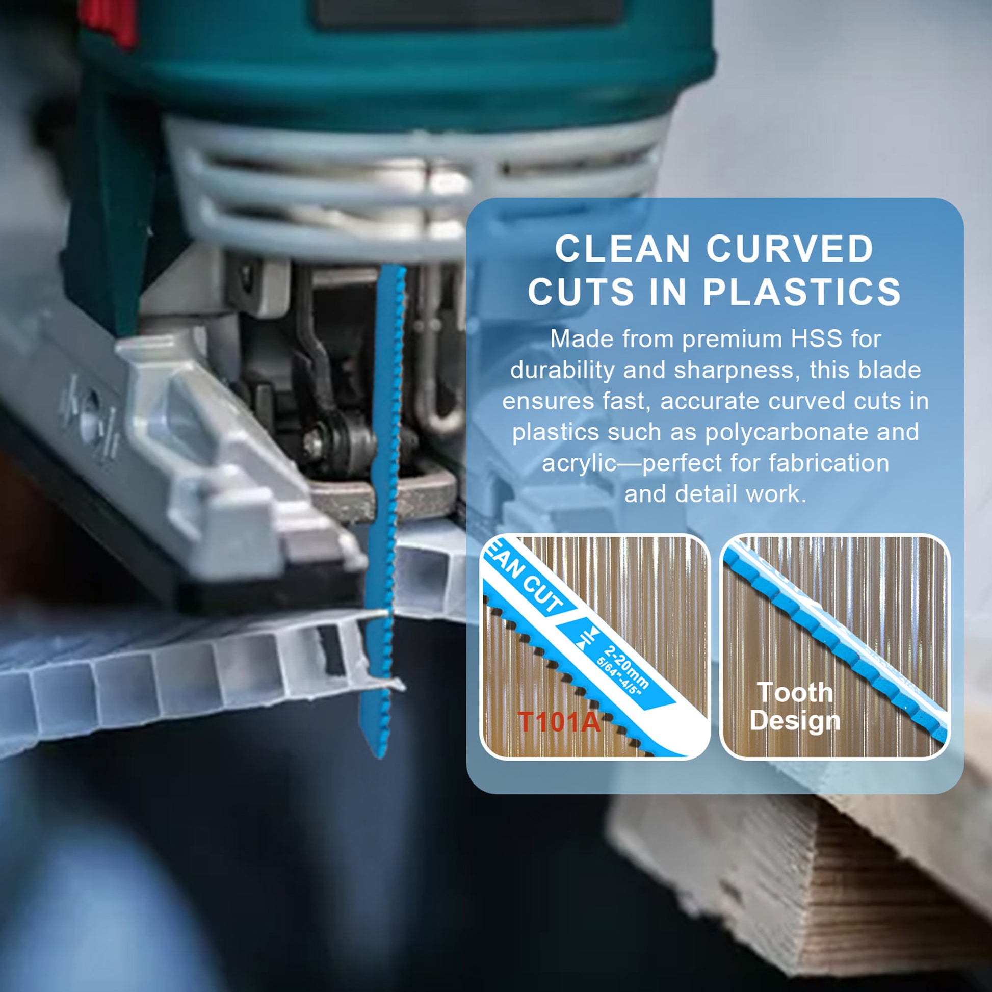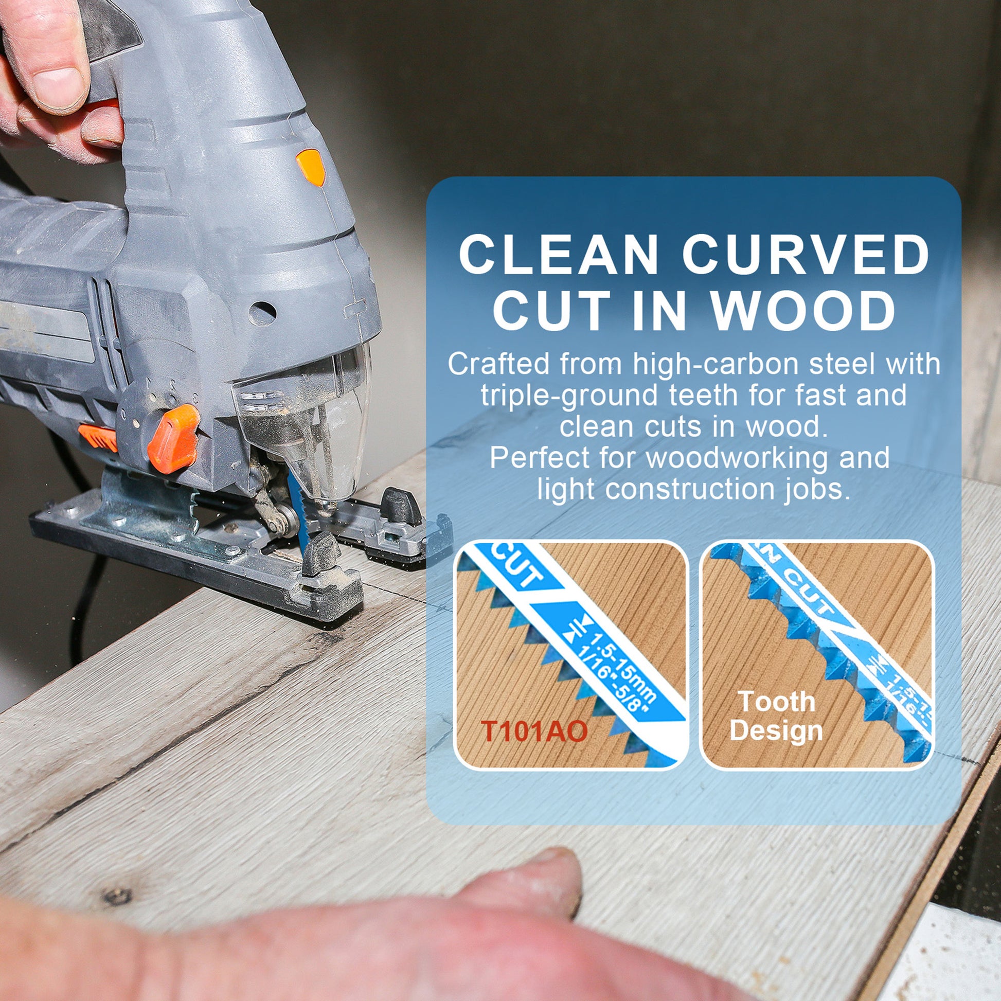 - Application: Clean curved cuts on softwood and non-abrasive woodworking materials