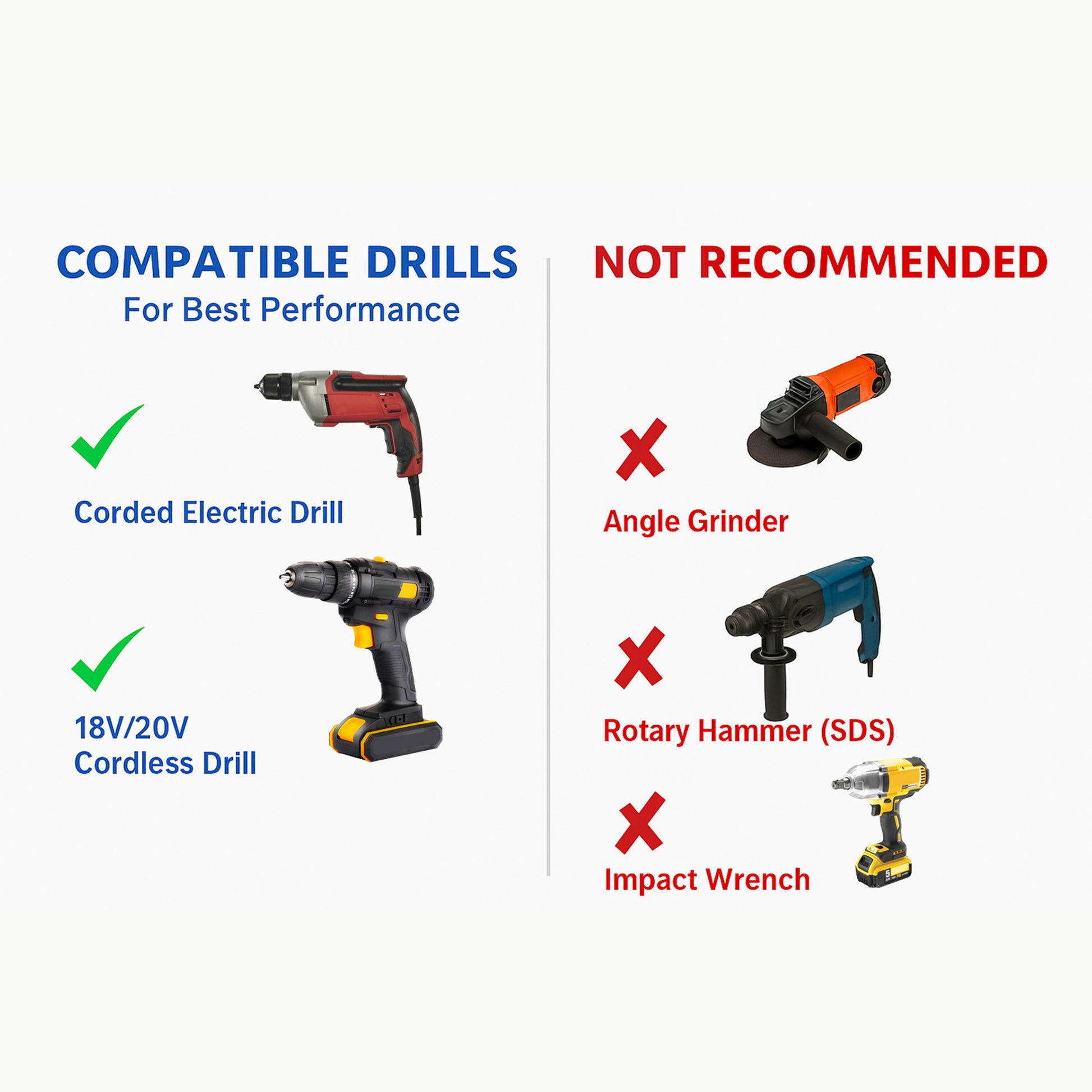 - Universal Compatibility: Works with bench drills, hand drills, lithium drills, and most major power tool brands