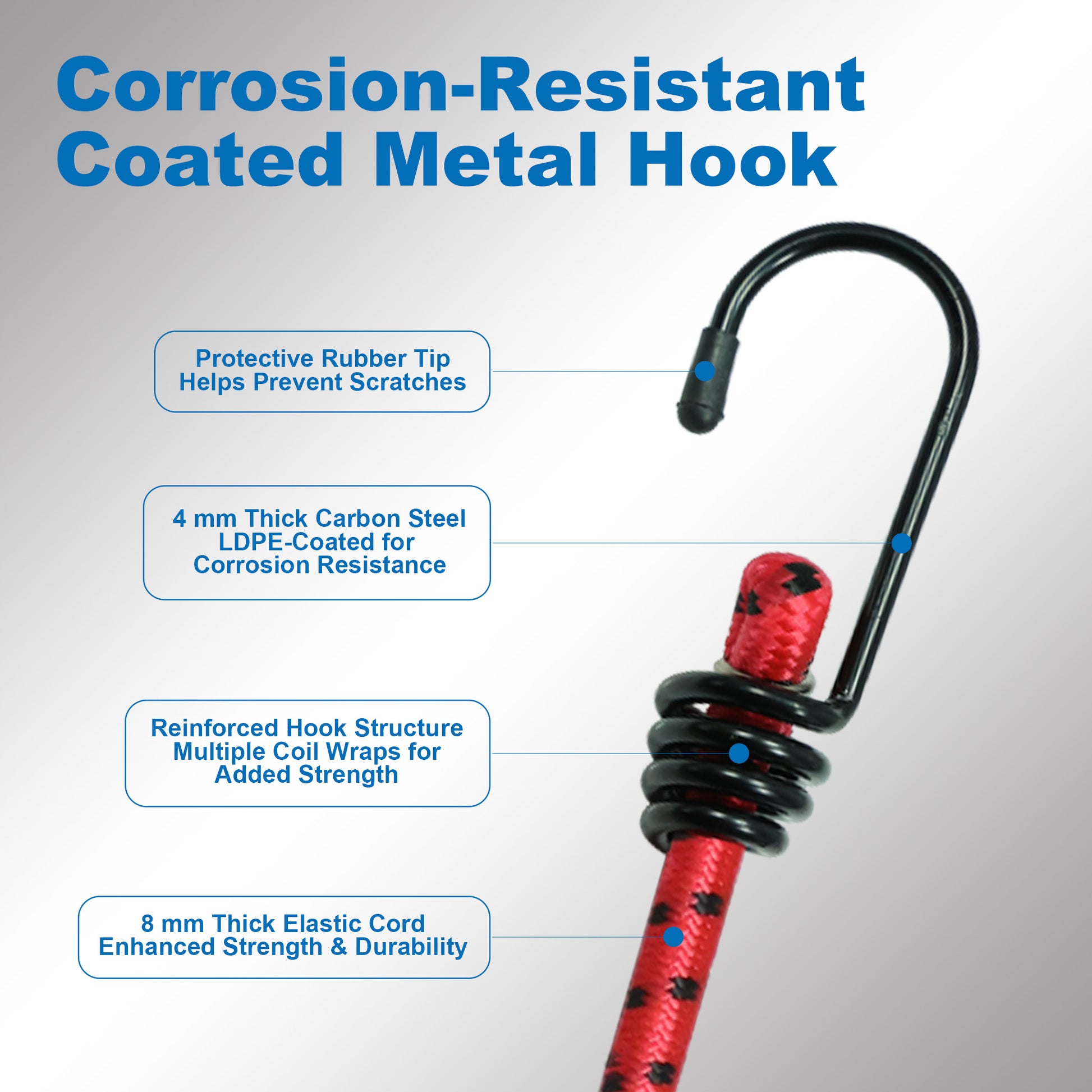 BULLITT 12PCS Tarpaulin Elastic Bungee Cords with Hooks -Heavy Duty 40kg(2 * 40cm+2 * 60cm+2 * 80cm+2 * 100cm+4* Bungees Balls) Weatherproof & UV-Resistant Elastic Bungee Straps for Securing